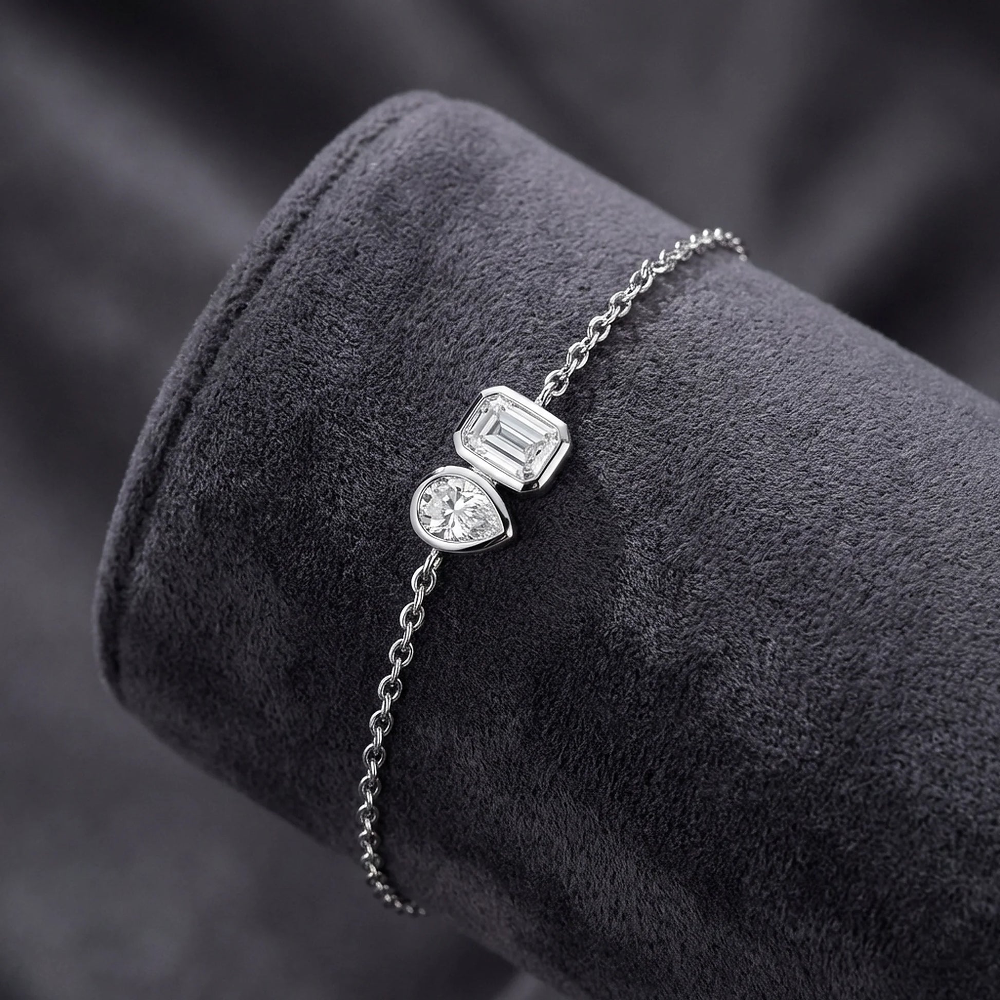 1.5ct Toi et Moi Moissanite Silver Bracelet - Emerald & Pear Bezel Set
