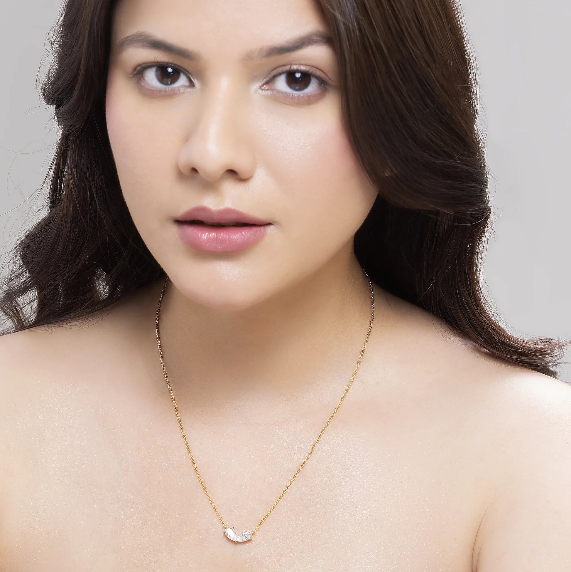 Amour 0.96 ct Pear Moissanite Twin Solitaire 925 Silver Necklace