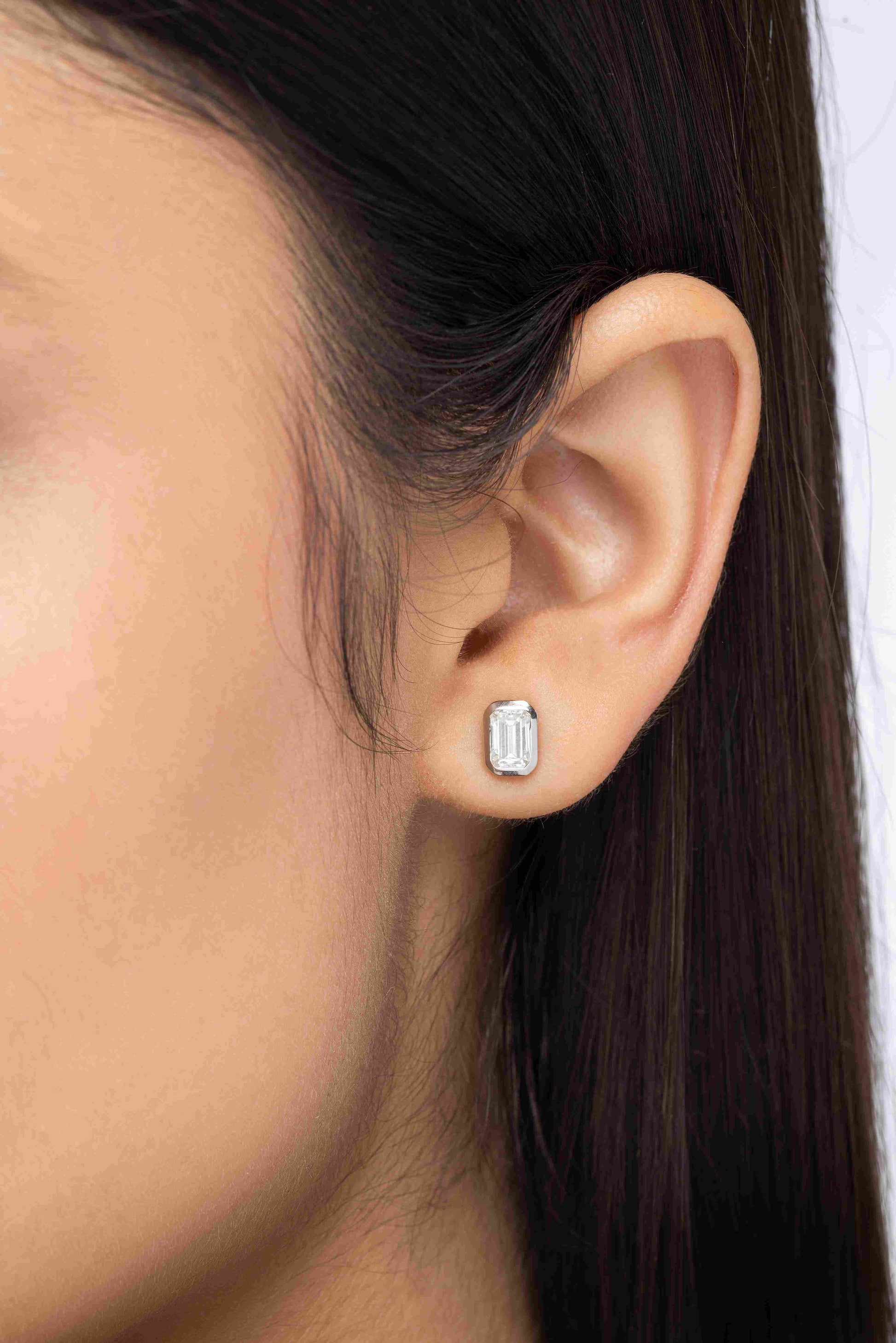 Axis 1.5 ct Emerald Moissanite Bezel 925 Silver Stud Earrings