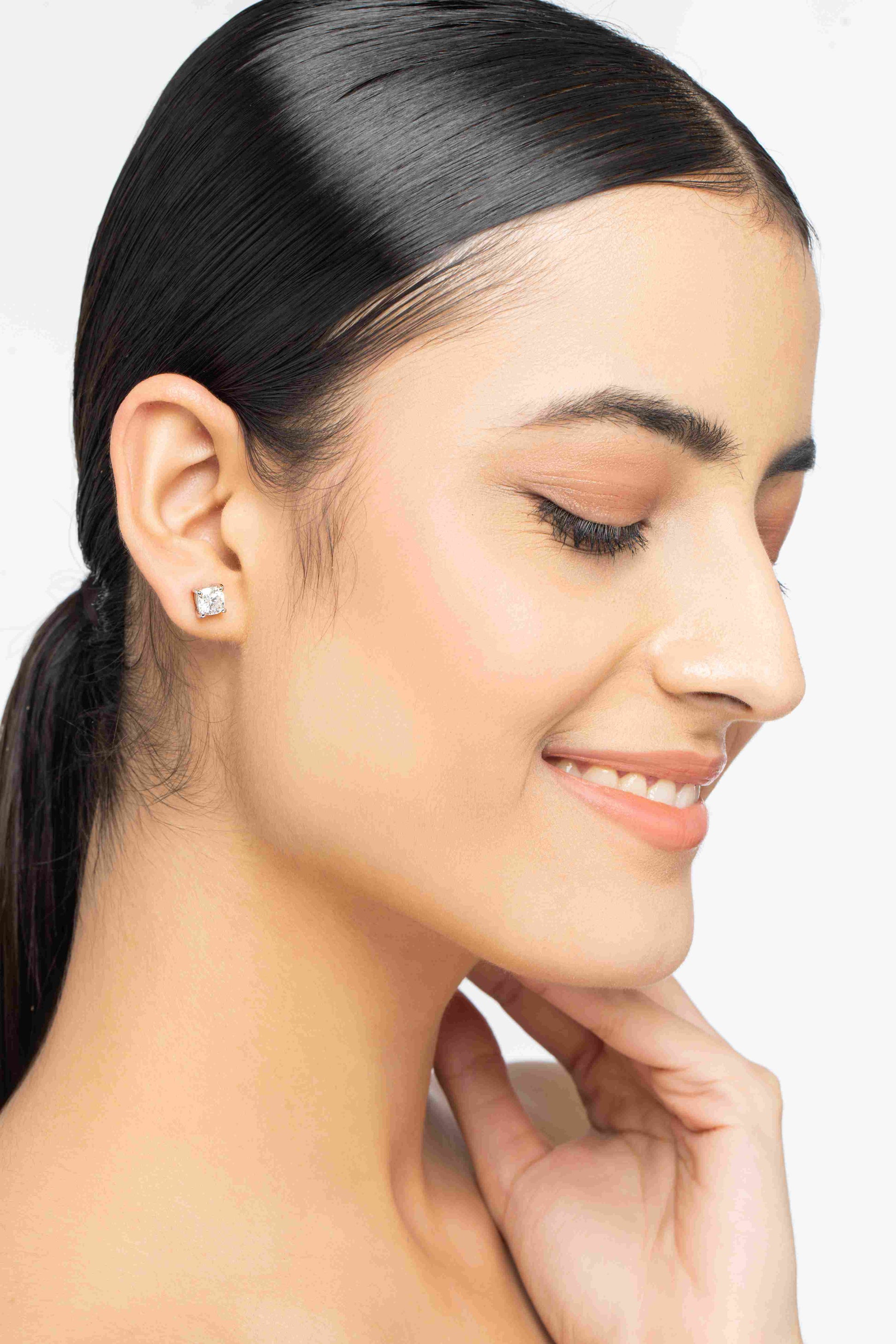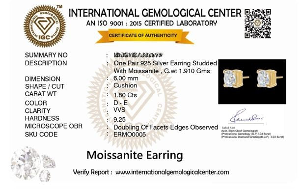 Charm 1.8 ct Cushion Moissanite Prong 925 Silver Stud Earrings