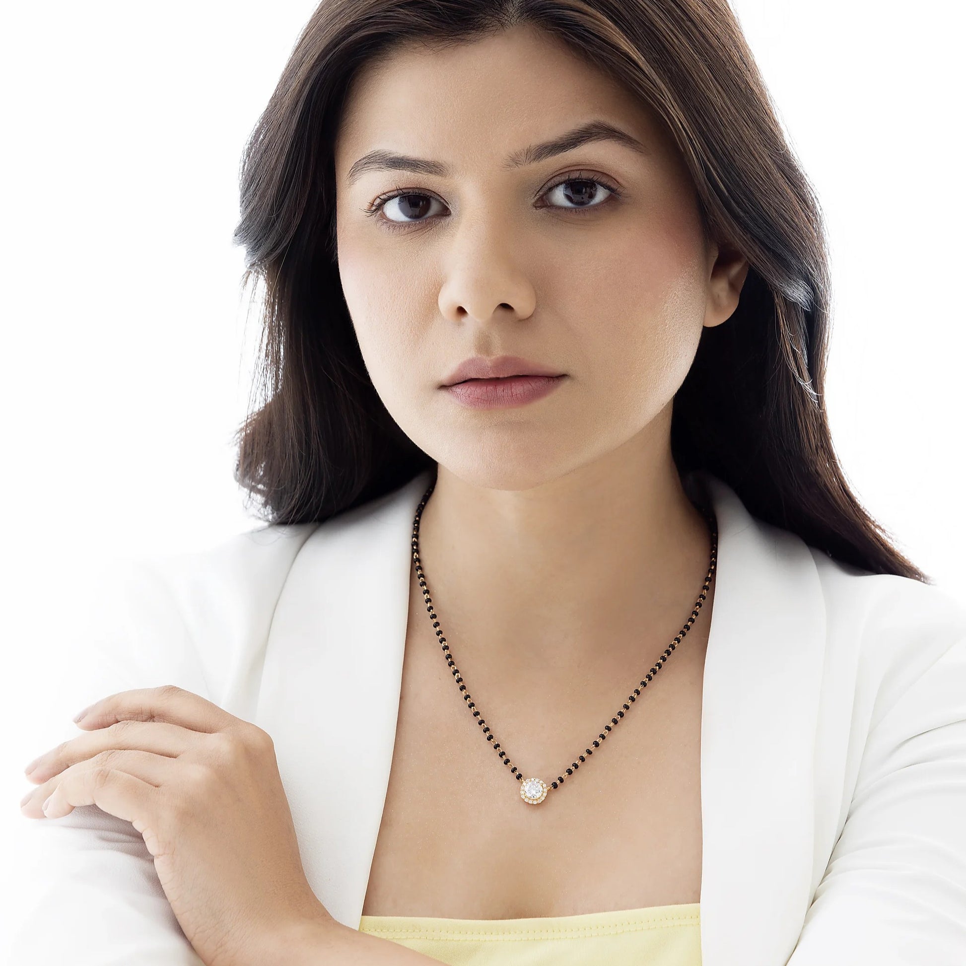 Round Cut Moissanite Halo Solitaire Prong 925 Silver Traditional Mangalsutra