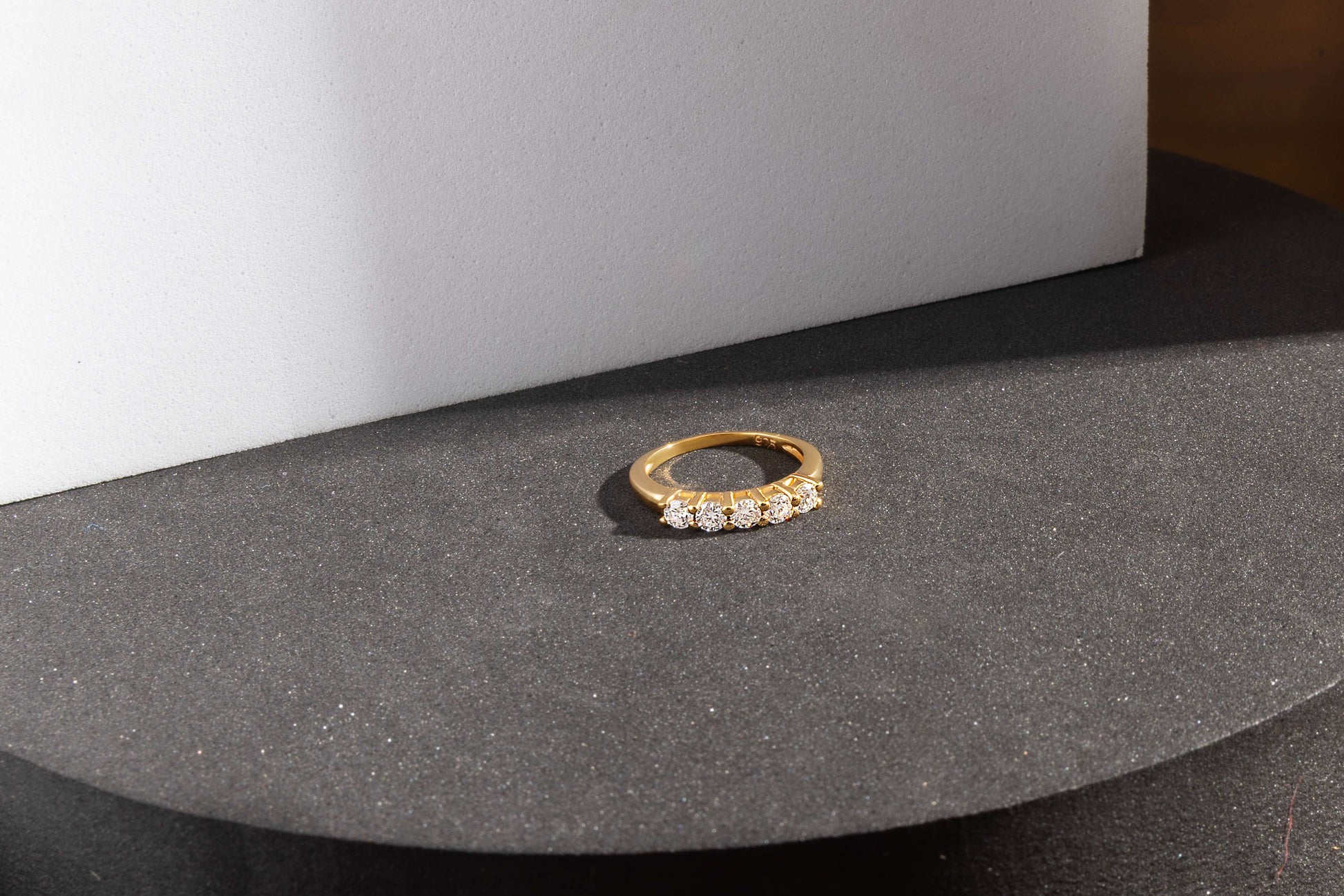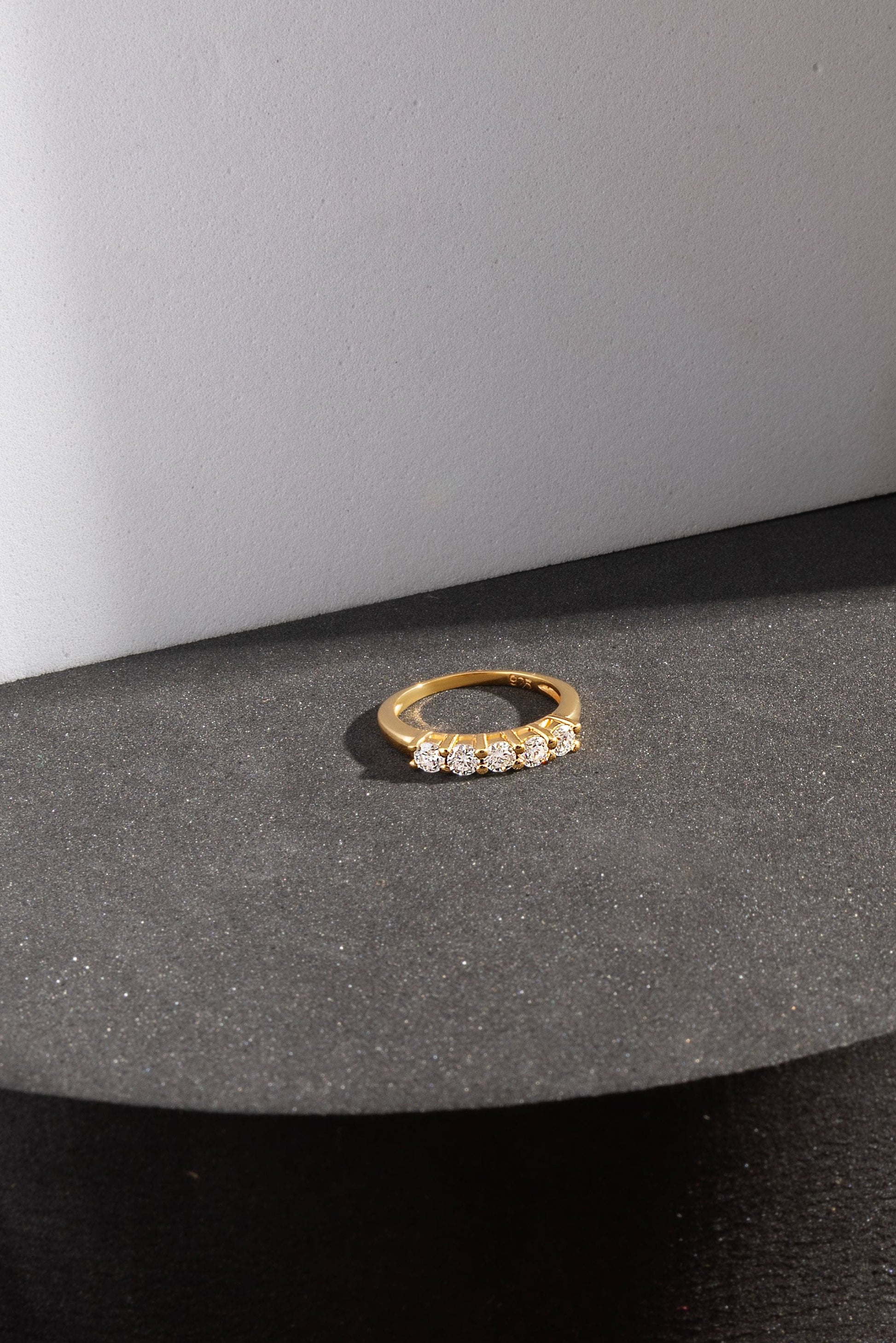 Symbolic and refined — the Eterna Harmony Band features five sparkling moissanites in 925 sterling silver, with a combined total of 1 carat. A half-eternity design that embodies balance, togetherness, and timeless elegance.