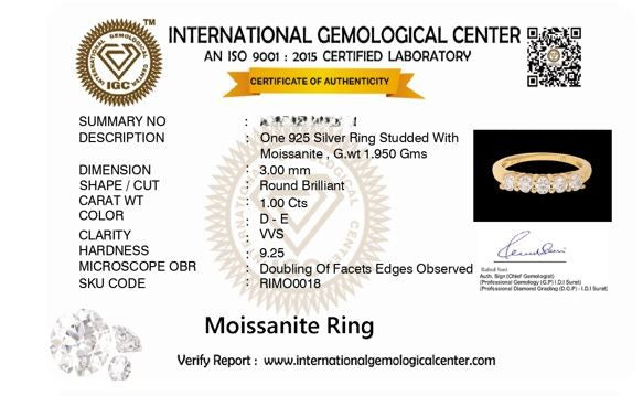 At Idhani, your trust and confidence come first. That’s why every moissanite we offer is backed by certification from the International Gemological Center (IGC) - An ISO 9001:2015 certified laboratory dedicated to ensuring genuine authenticity and uncompromised quality