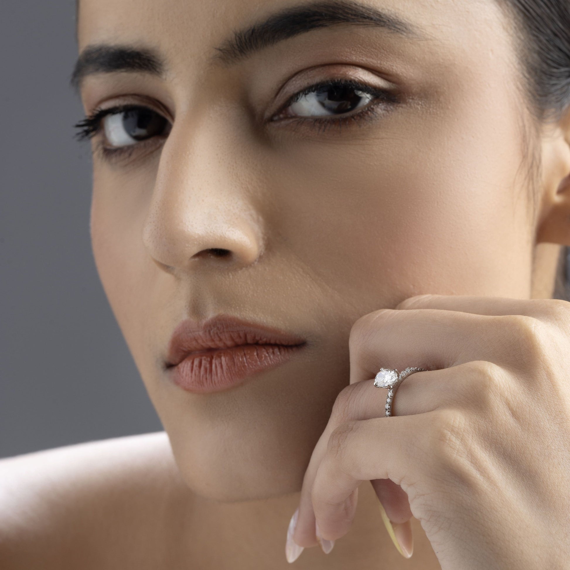 Nova 0.8 ct Oval Moissanite 925 Silver Solitaire Pavé Ring
