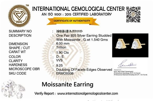 Nova 1.9 ct Trillion Moissanite Prong 925 Silver Stud Earrings