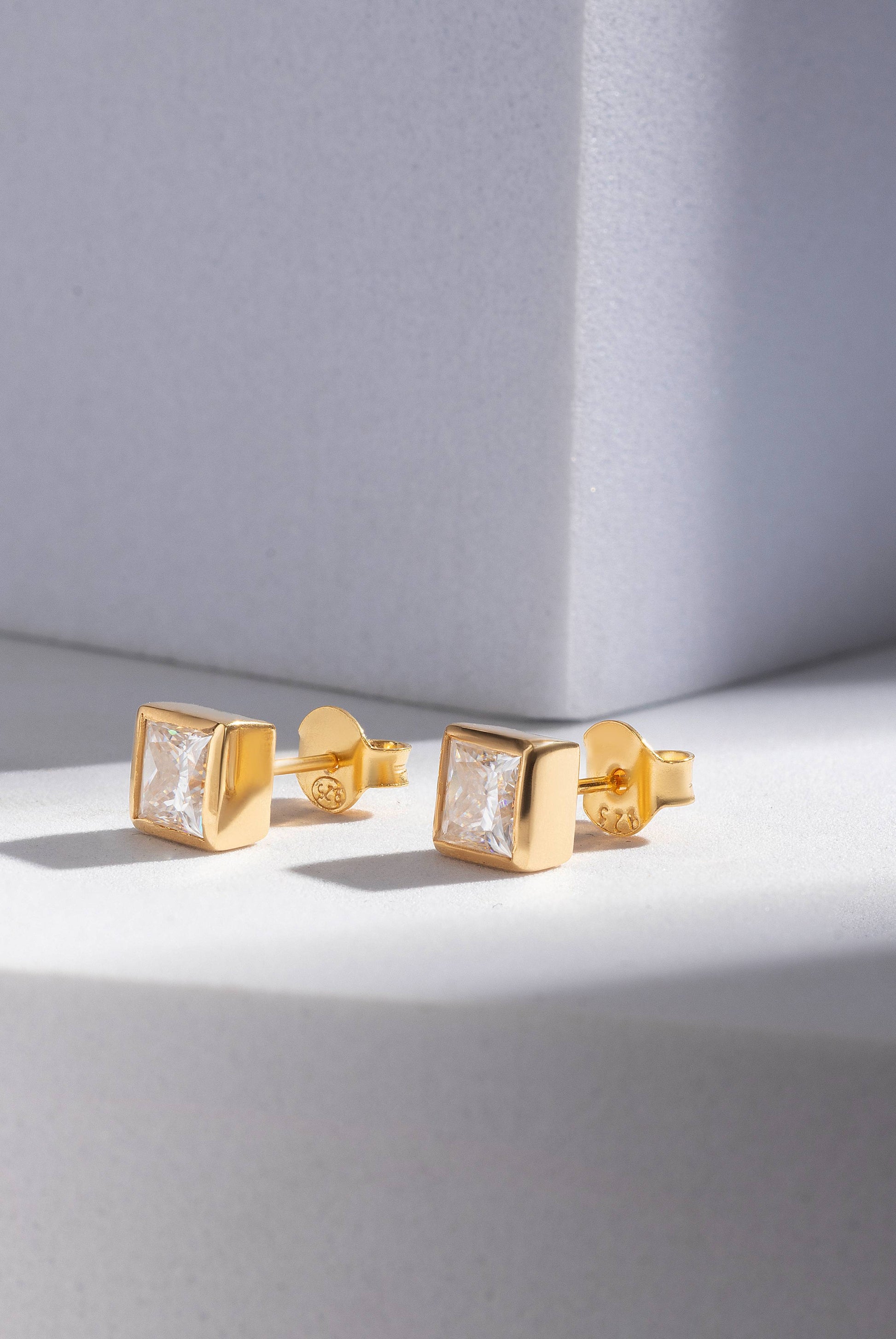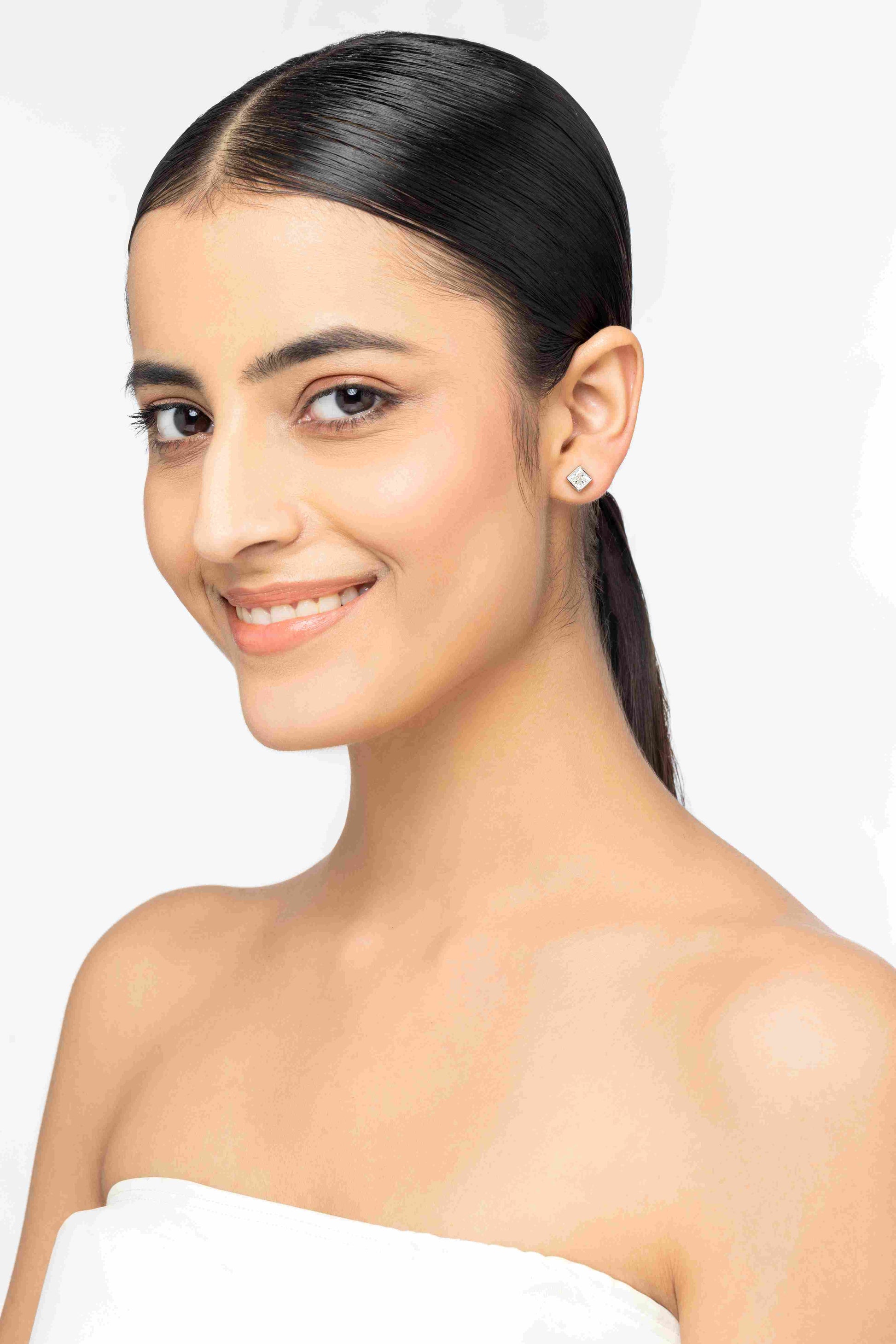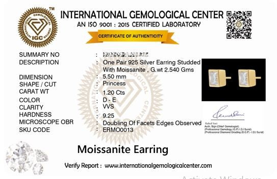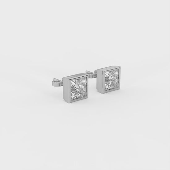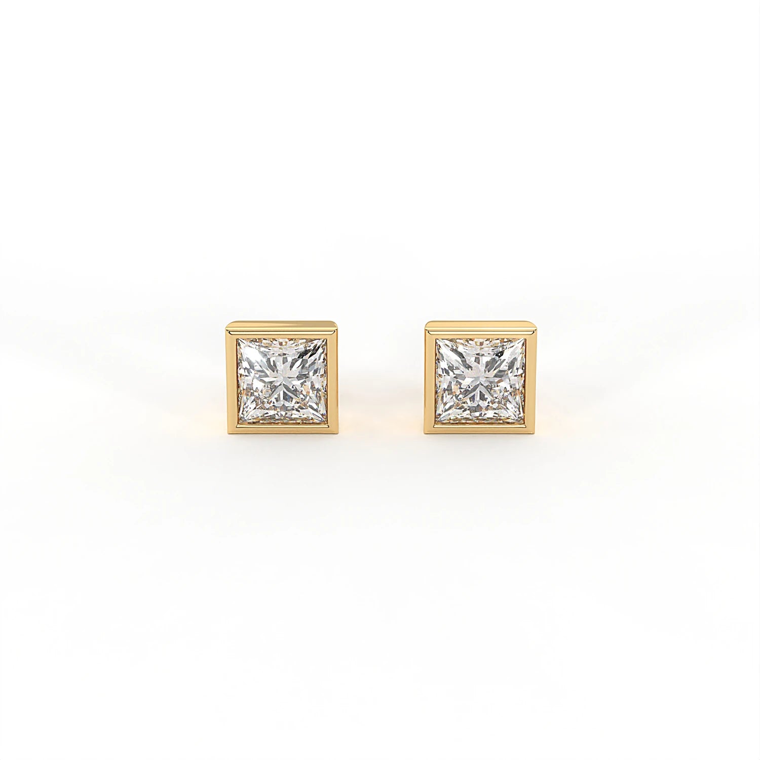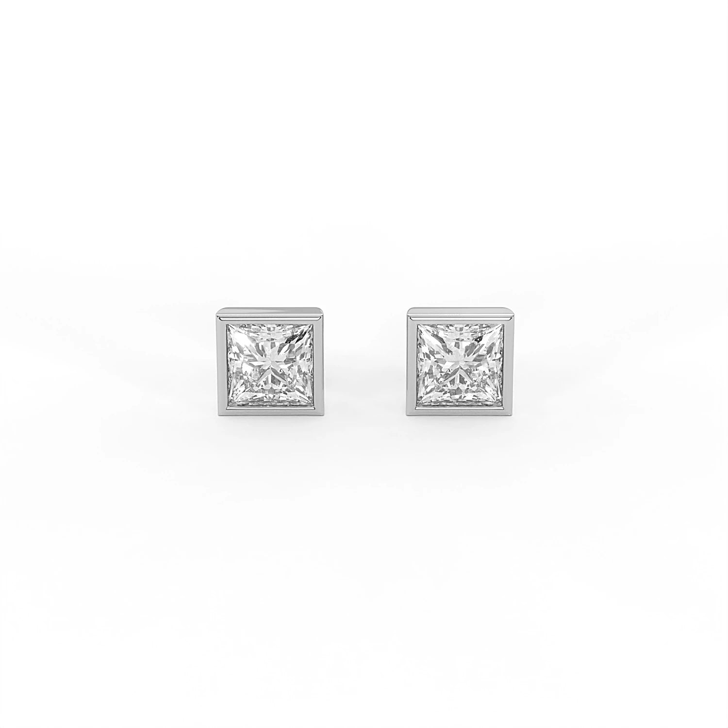 Poise 1.2 ct Princess Moissanite Bezel 925 Silver Stud Earrings