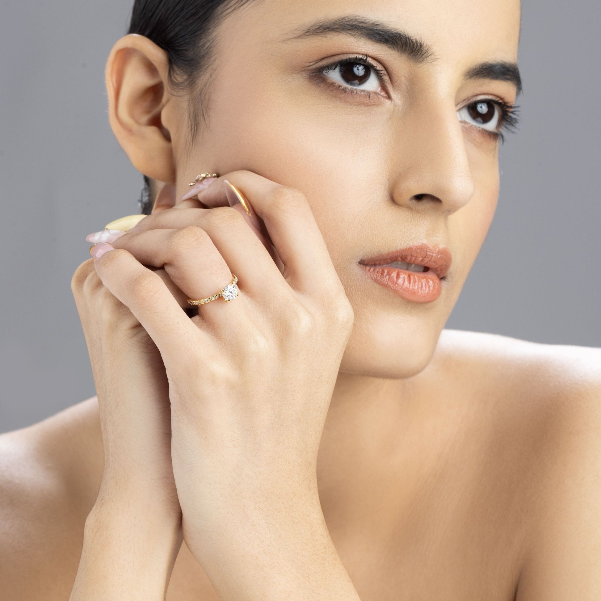 Radiance 0.8 ct Round Moissanite 925 Silver Pavé Solitaire Ring