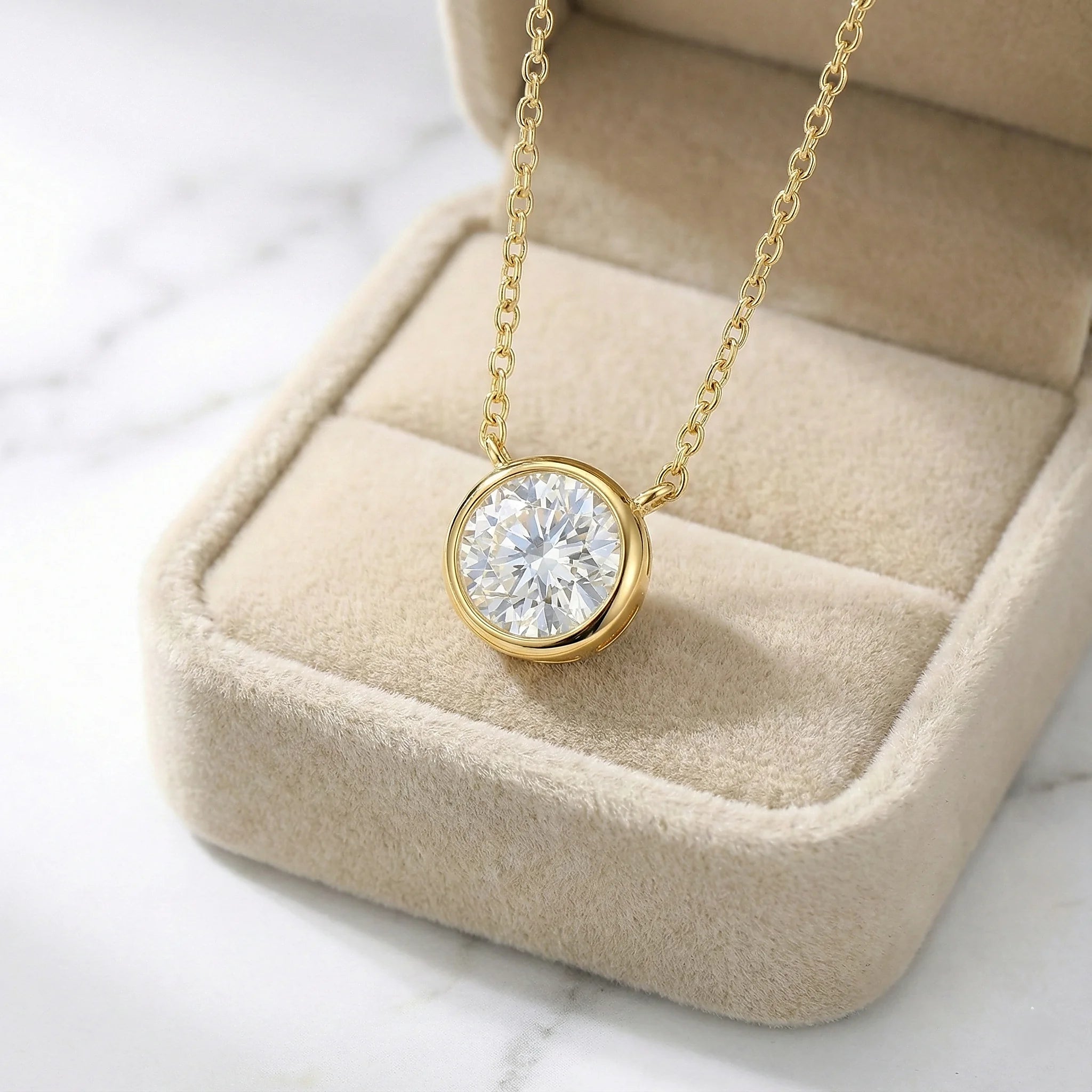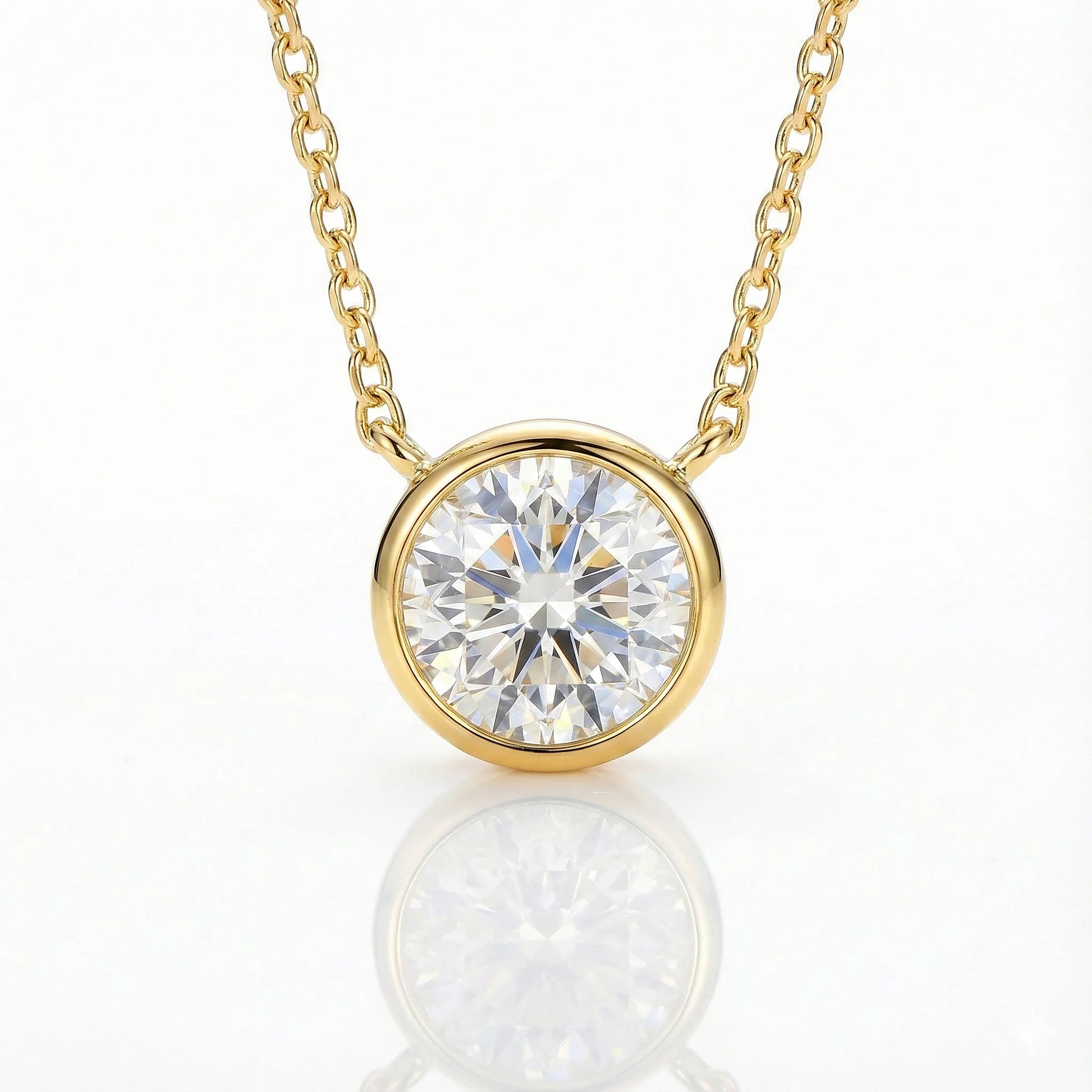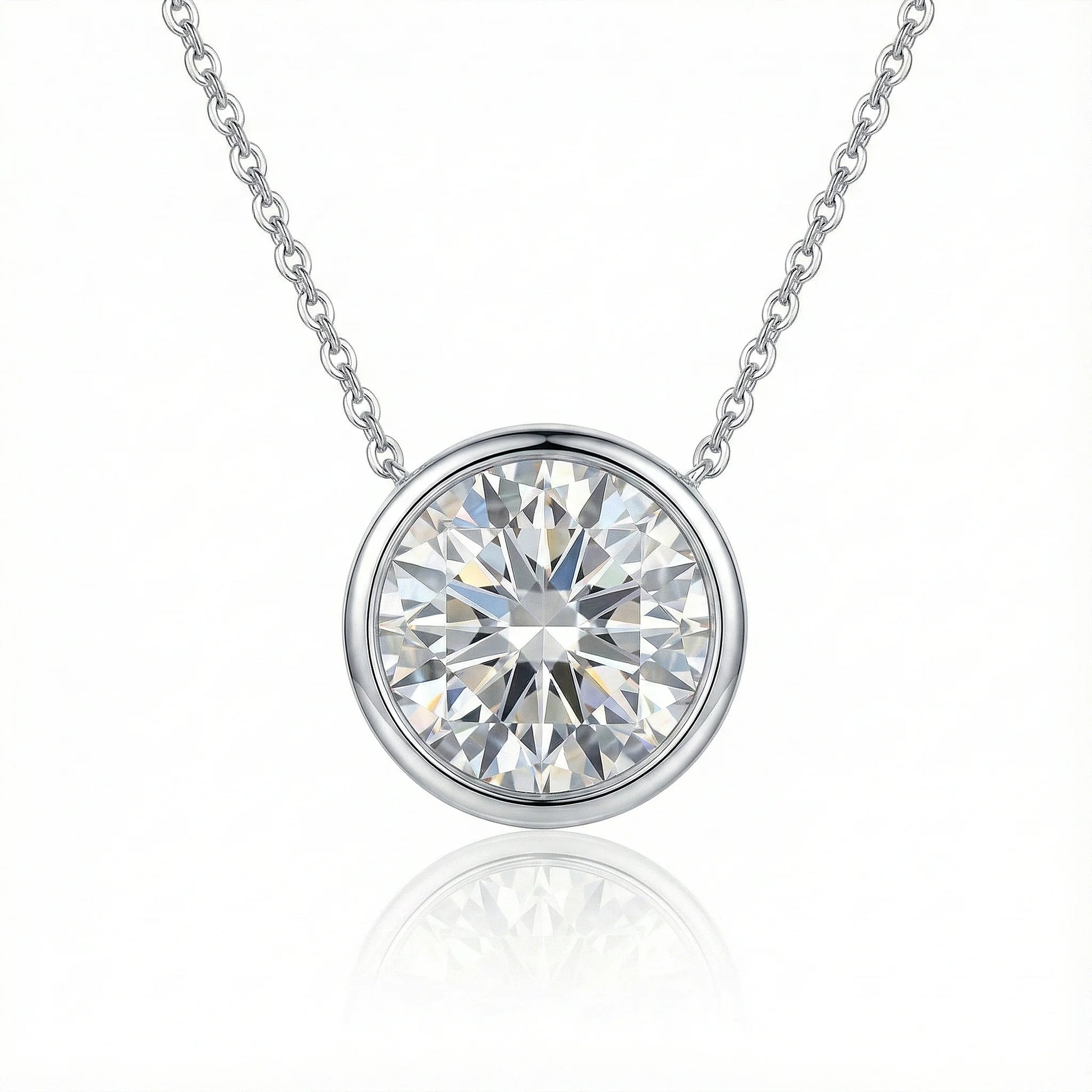 Stella 1.92 ct Round Moissanite Solitaire Bezel 925 Silver Necklace