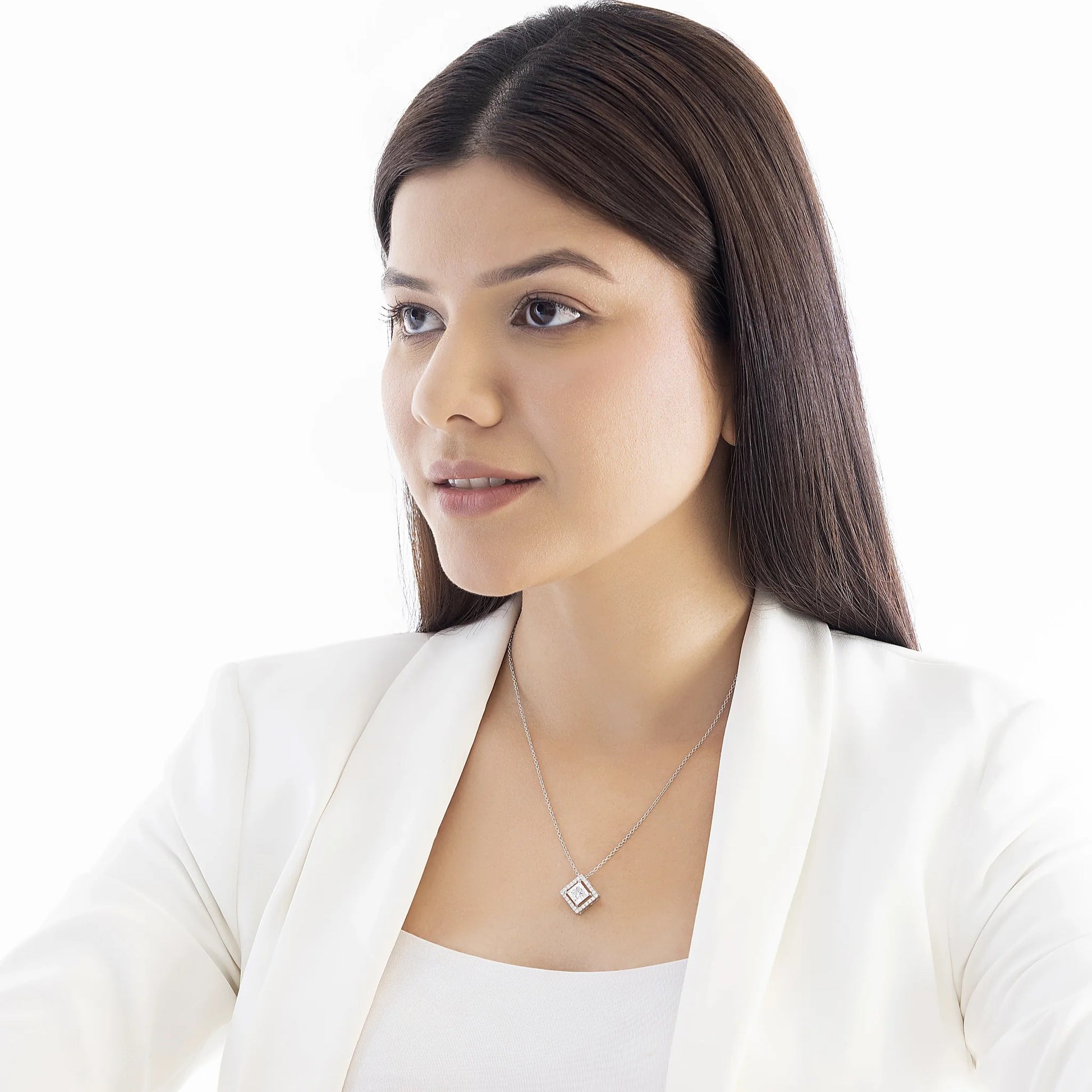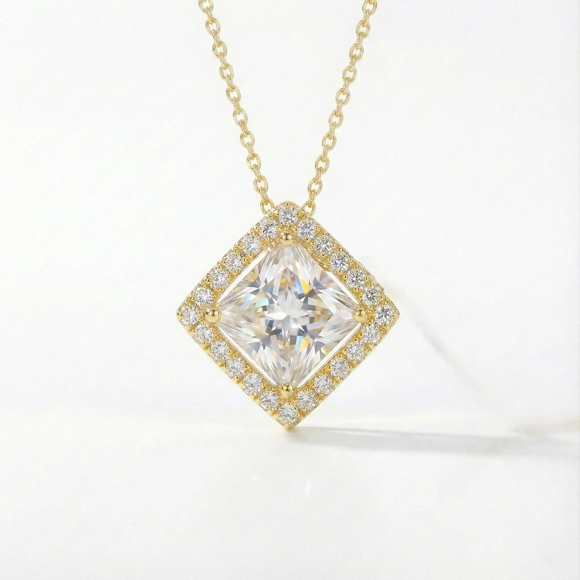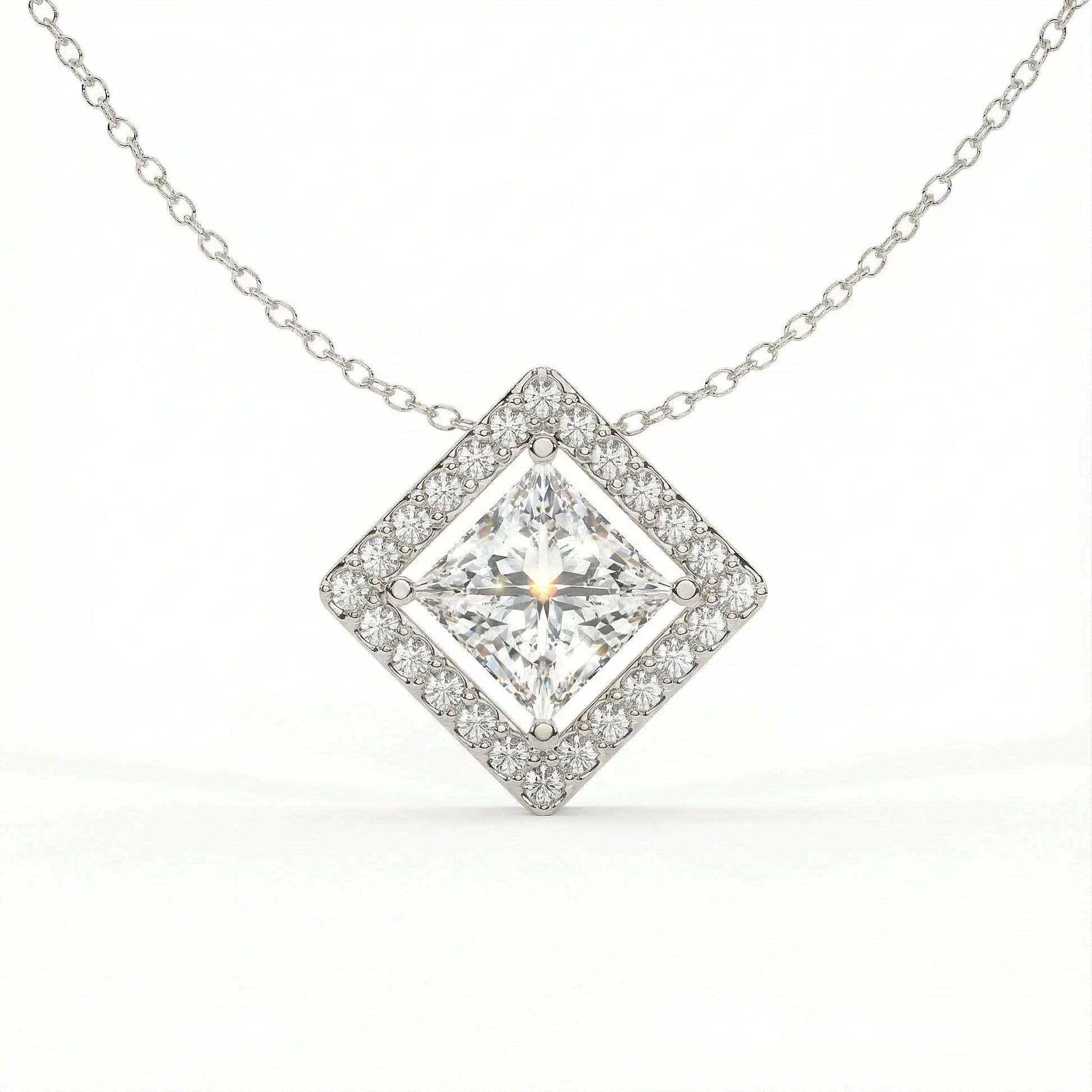 Vega 2.09 ct Princess Moissanite Floating Halo 925 Silver Necklace